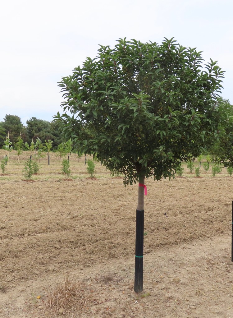 SPARKLING SPRITE CRABAPPLE. Excellent ornamental tree for residential use at the front corner of the house, off the patio, or in the yard in a grouping or as a single specimen. A compact round form attaining a mature size of 12’x12′ with bright green disease resistant foliage. Features include a profuse white spring flower, a small non messy fruit, a sucker free base, and a medium plus growth rate. Pictured tree at $210.